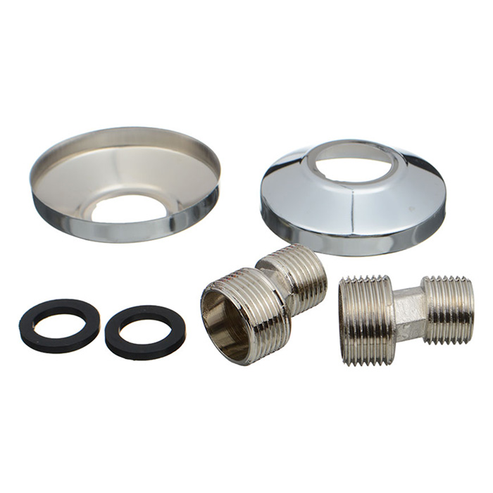 Эксцентрик для смесителя латунь с отражателем 3/4 (пара) MKP20767P. Эксцентрик представляет собой металлический резьбовой фитинг, предназначенный для жесткого крепления к водопроводу сантехнического смесителя. Его использование позволяет осуществить корректировку положения смесителя в пространстве и компенсировать неточность установки водорозеток и резьбовых патрубков. Комплект эксцентрик с отражателем 2 шт (пара).