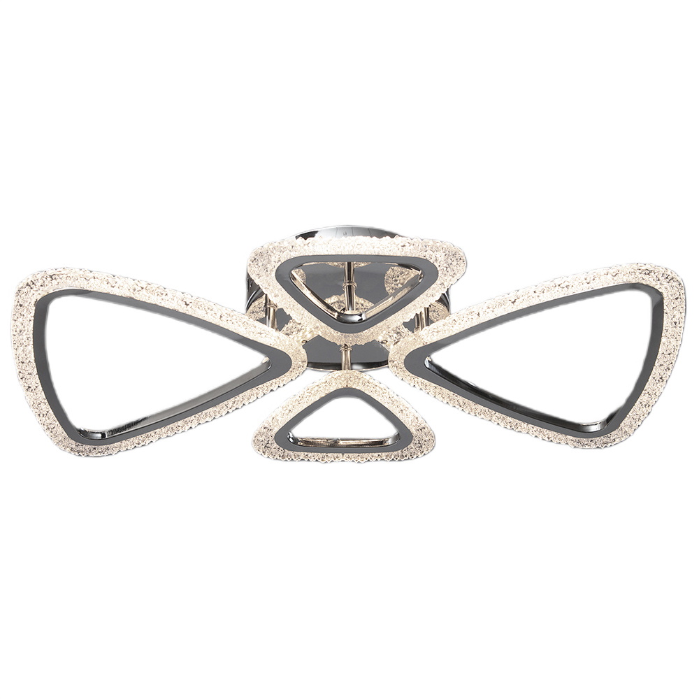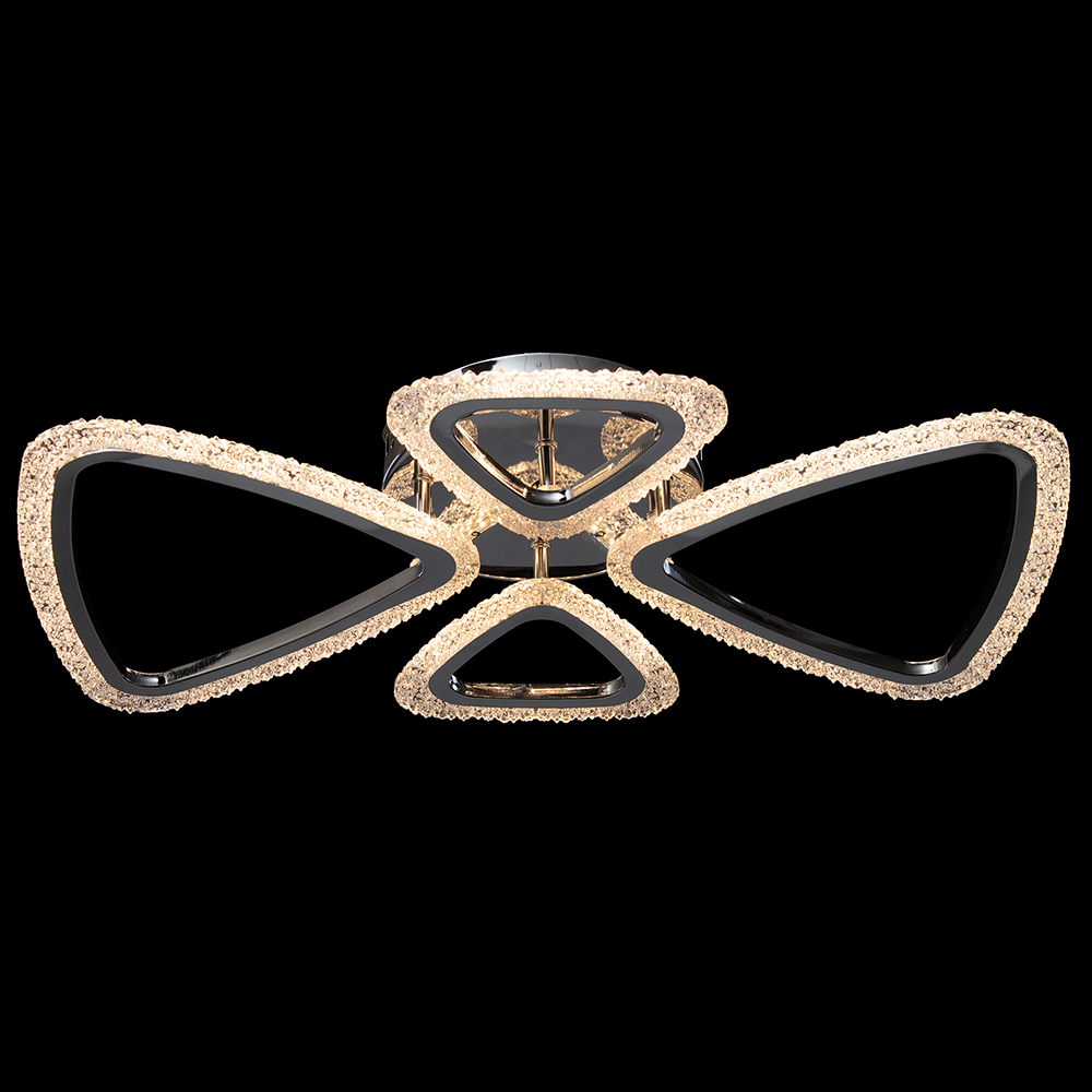 ГАЛЛОП Галактика К008022 - светодиодный светильник бытового предназначения мощностью 70Вт без RGB подсветки, без пульта. В качестве декора выступает рельефный акрил, который преломляет световой поток и за счет этого создается эффект "игры света". За счет маленькой высоты идеально подходит для низких потолков. Светильник состоит из круглого потолочного основания и 4 кронштейнов в виде лепестков геометрической формы разного размера (2 + 2).