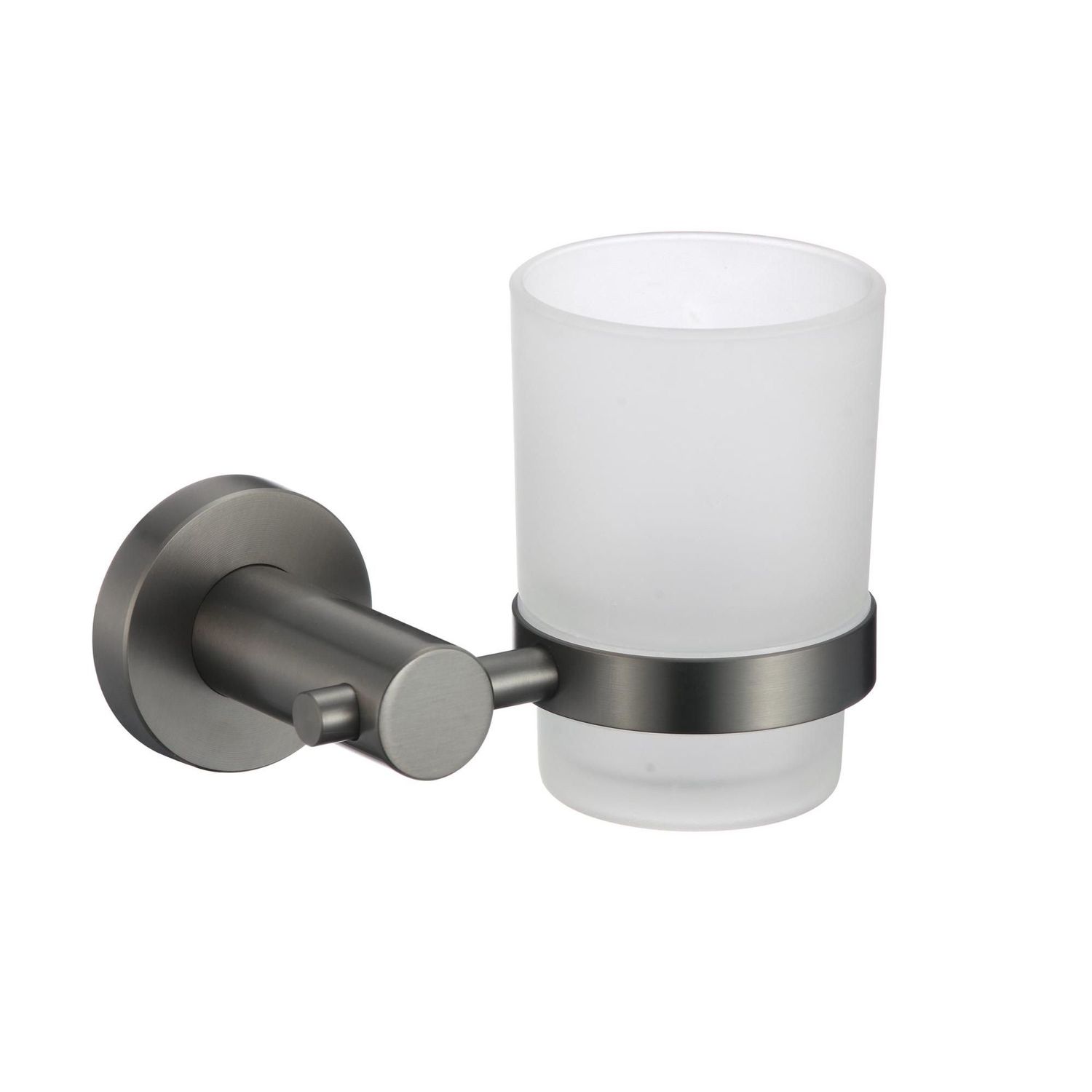 Комплект включает в себя элегантный стакан из приятного глазу матового стекла, устойчивого к царапинам и потертостям, а также практичный настенный держатель из высокопрочной нержавеющей стали с графитовым матовым покрытием. Простота установки обеспечена методом крепежа на шурупы прямо на стену, что позволяет разместить стакан компактно и удобно в любой зоне помещения. Использование такого аксессуара позволит вам организовать пространство в ванной комнате аккуратно и стильно!