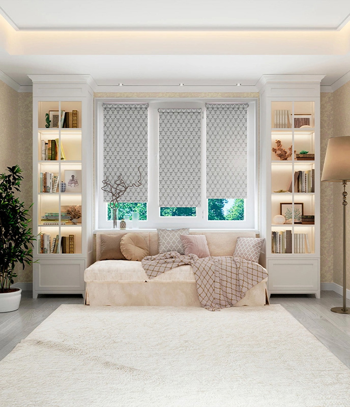 Жизель – это плотные рулонные шторы с классической вензельной розеткой на ткани. Оригинальное решение для помещений в классическом стиле. Вешать рулонные шторы можно с плотными портьерами, с тюлем или как самостоятельный элемент. Устойчива к выцветанию, пыле-влаго стойкая. Светопроницаемость — 30%.