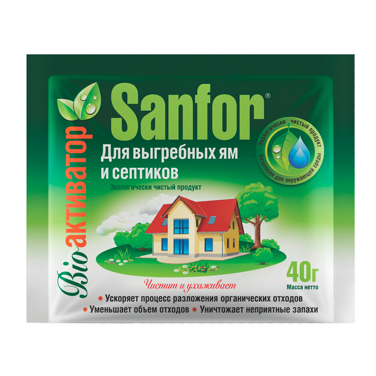 Для выгребных ям. Содержимое пакета разбавить на ведро воды и залить в выгребную яму. Если яма обезвожена, добавить воды для эффективности. Повторить обработку через месяц или по необходимости.