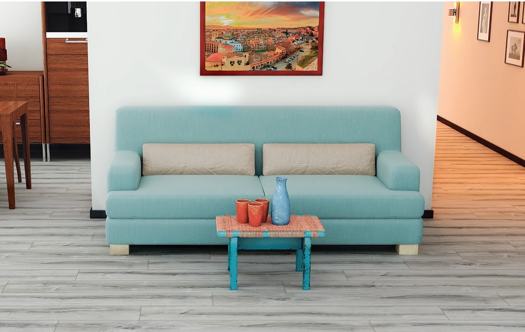 Ламинат коллекции Blue, имитирующий натуральное дерево дуба, отличается изысканным внешним видом и способен создать уютную атмосферу в любом интерьере. Особенностью покрытия является фаска с четырёх сторон каждой панели, придающая ламинату выразительность и подчёркивающая индивидуальность вашего пространства.