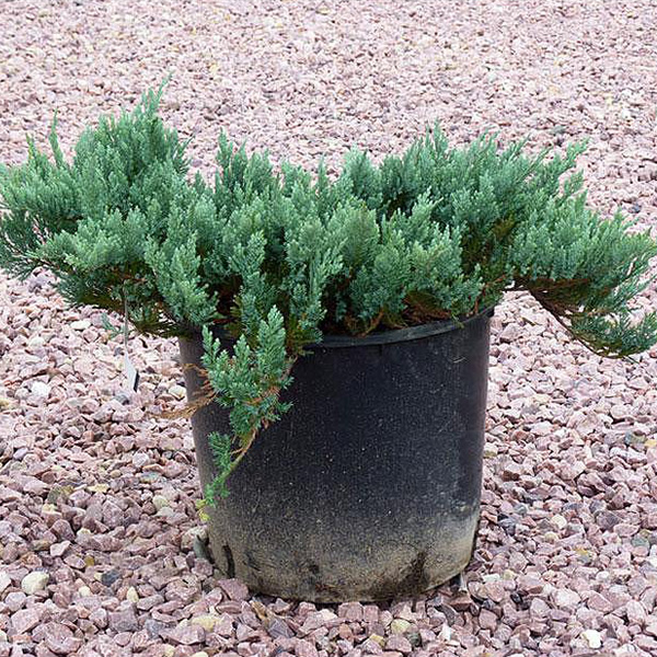 Можжевельник горизонтальный Блю Чип — Один из лучших стелющихся сортов можжевельника. Его изящные стелющиеся по земле побеги со слегка приподнятыми концами равномерно расползаются в разные стороны, создавая густой ковер. Это медленнорастущий низкорослый вечнозеленый карликовый кустарник, во взрослом состоянии достигает 0,3 м в высоту и 1,5 м в ширину.