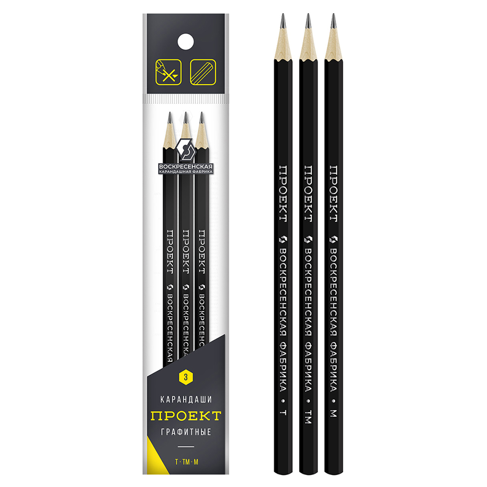 Набор чернографитных карандашей ТМ ВКФ «Проект» с градацией твердости Т, ТМ, М предназначен для чертежных и письменных работ. В набор входит три готовых к использованию заточенных карандаша. Карандаши изготовлены из высококачественных материалов — отборной древесины и прочного грифеля. Совместимы с любыми видами точилок.