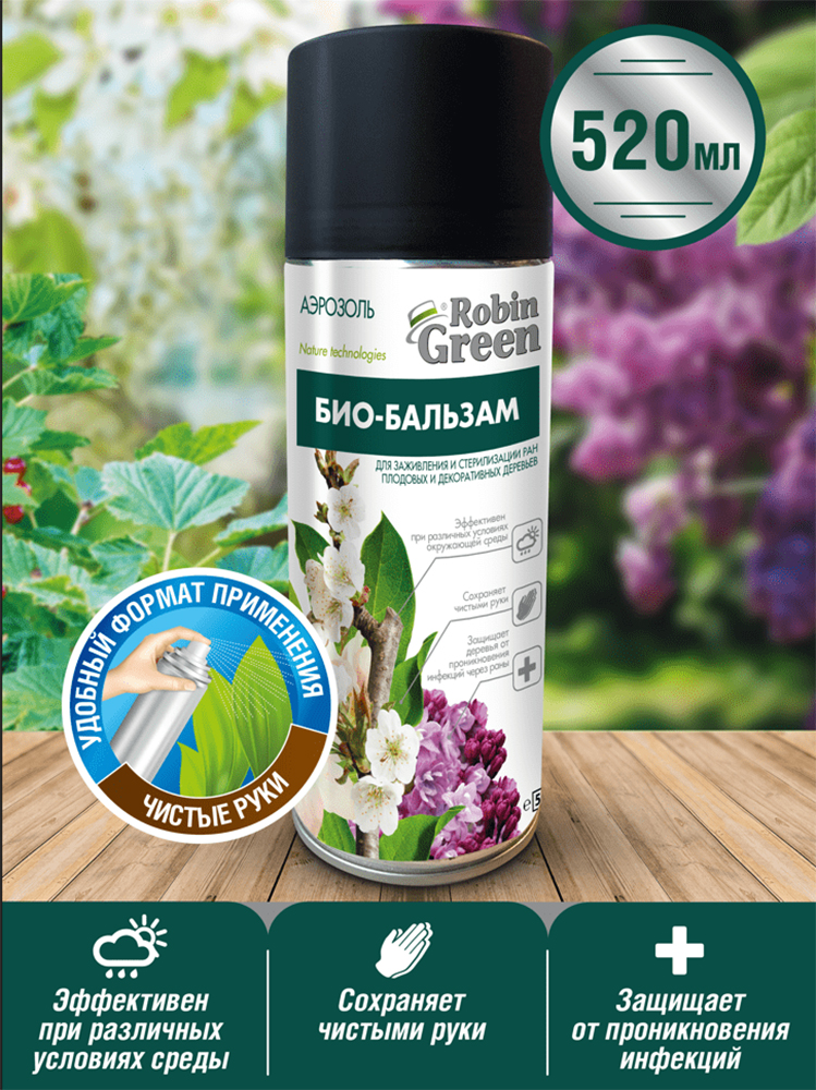 Био-бальзам Robin Green - средство для заживления ран растений, произведенный по уникальной технологии и успевший завоевать популярность садоводов благодаря целому ряду важнейших свойств.