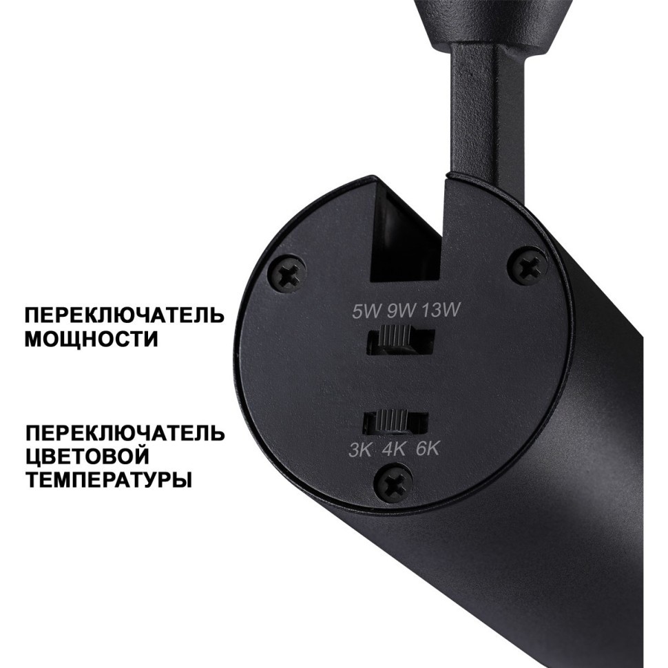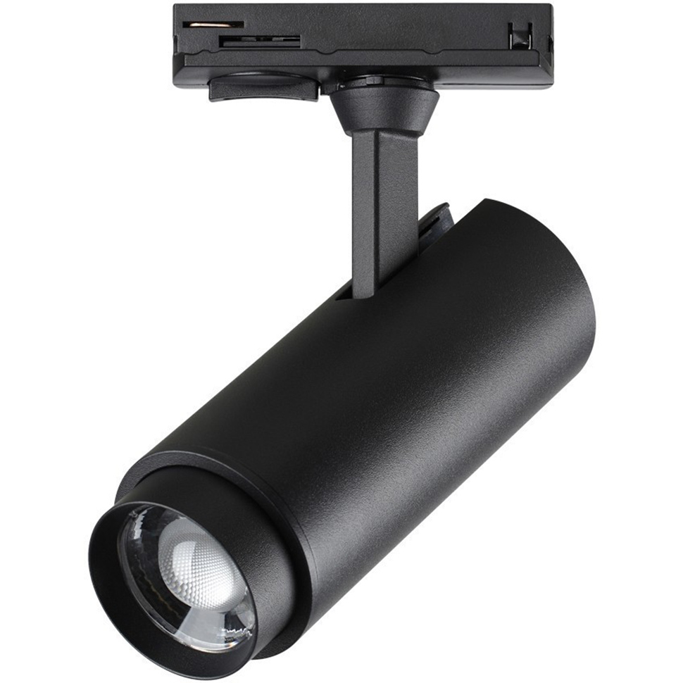 Светильник работает от сети 220 В и совместим с LED-треками. Защита IP20 рассчитана на использование в сухих помещениях.