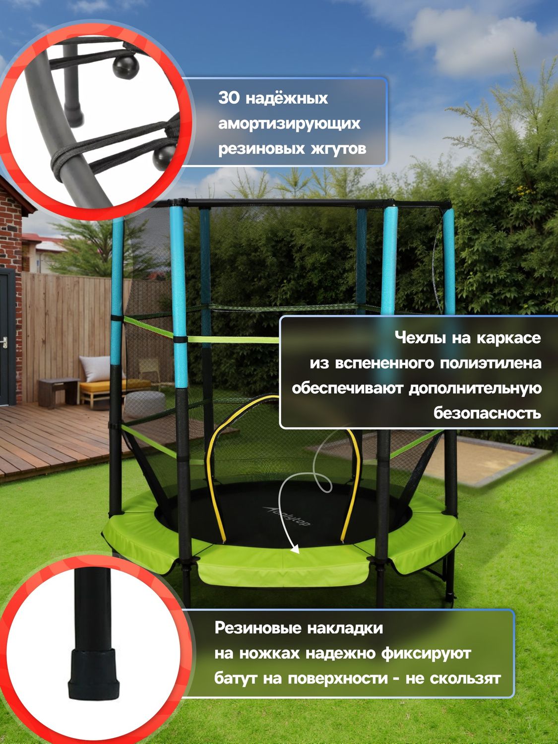 - резиновые накладки на ножках надежно фиксируют батут на поверхности — не скользят