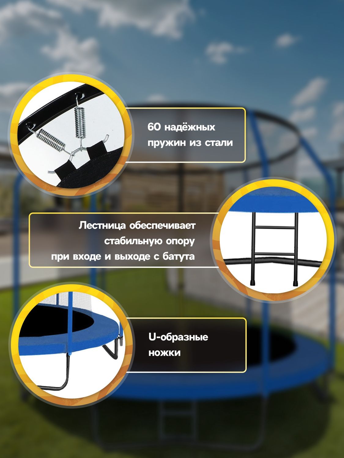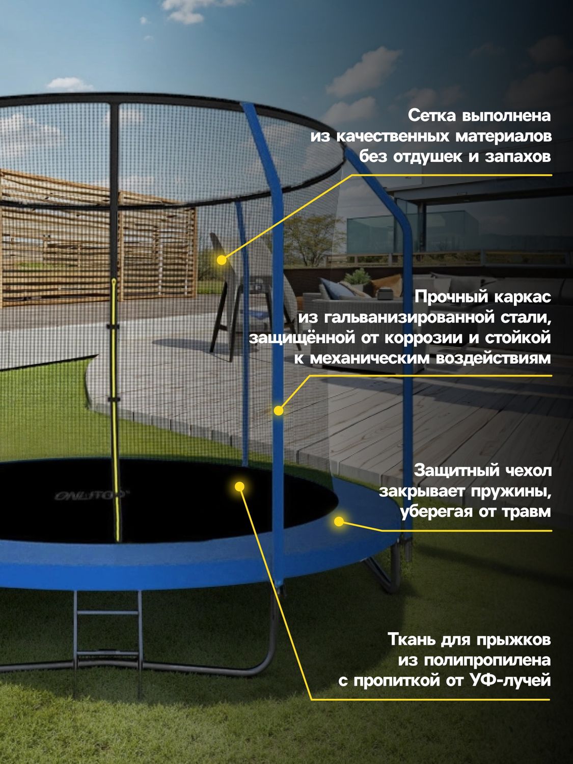 Каркасный батут — отличное решение для активного отдыха детей прямо во дворе вашего дома! Этот игровой элемент подарит детям массу веселья и обеспечит физическую активность. Регулярные прыжки способствуют укреплению мышц ног, спины и живота, улучшению чувства равновесия и координации движения.