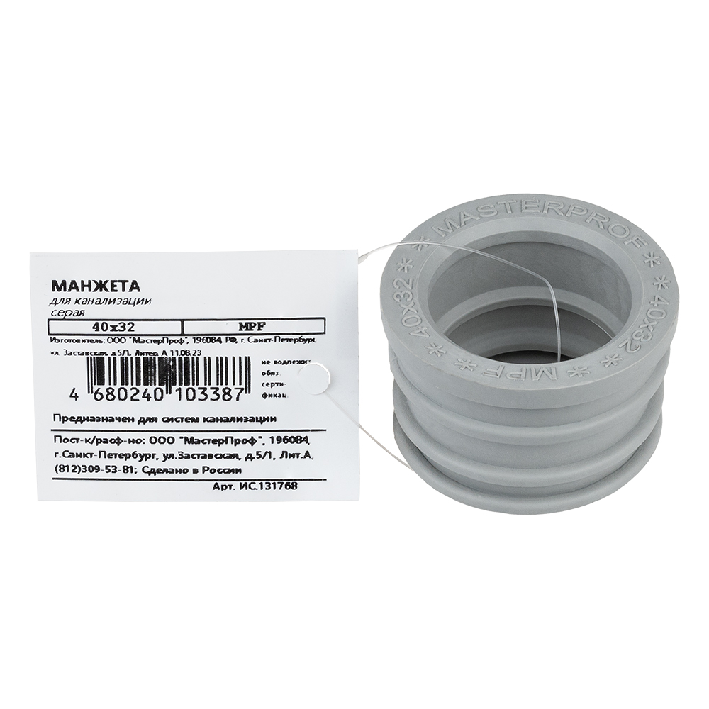 Сантехническая манжета для канализации MASTERPOF 40x32, серая, уплотнительная, переходная ИС.131760 предназначена для соединения канализационных труб диаметром 40 мм с канализационными трубами диаметром 32 мм. Наружное оребрение манжеты выполнено с учетом всех особенностей строения пластиковой канализационной трубы и обеспечивает идеальную интеграцию в просвет.