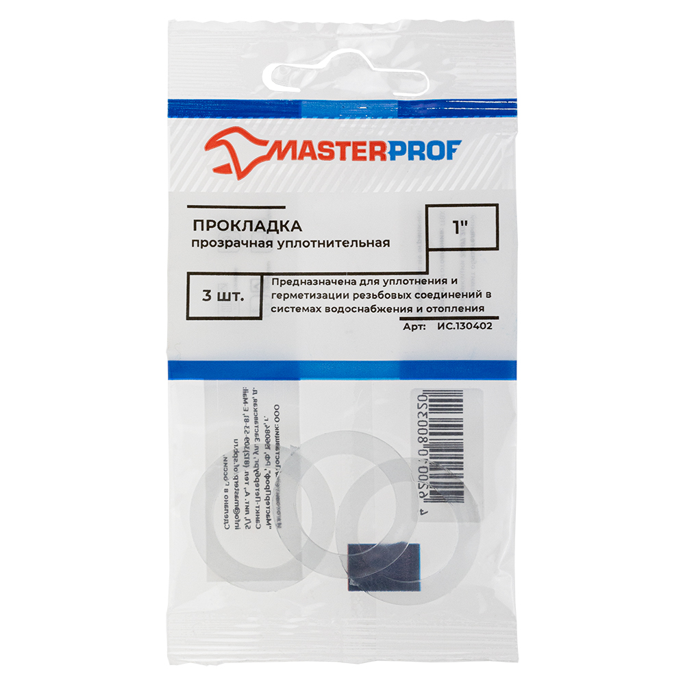 Прокладка уплотнительная MasterProf 1" 3 шт ИС.130402 предназначена для герметизации резьбовых соединений в системах горячего, холодного водоснабжения и отопления. Состав комплекта: прокладка прозрачная 1" (30х19х2 мм) - 3шт.