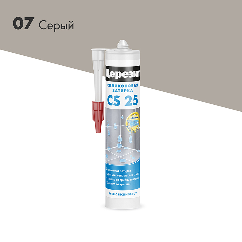 Цветная затирка с усиленным противогрибковым эффектом для герметизации угловых швов и стыков. Силиконовая затирка CS 25 предназначена для герметизации угловых, деформационных и примыкающих к санитарно-техническому оборудованию (ваннам, раковинам и др.) швов плиточных облицовок в помещениях с повышенной влажностью: ванных комнатах, душевых, кухнях, туалетах и т.д. Обладает высокой адгезией к эмалированным поверхностям, стеклу, фарфору и фаянсу.