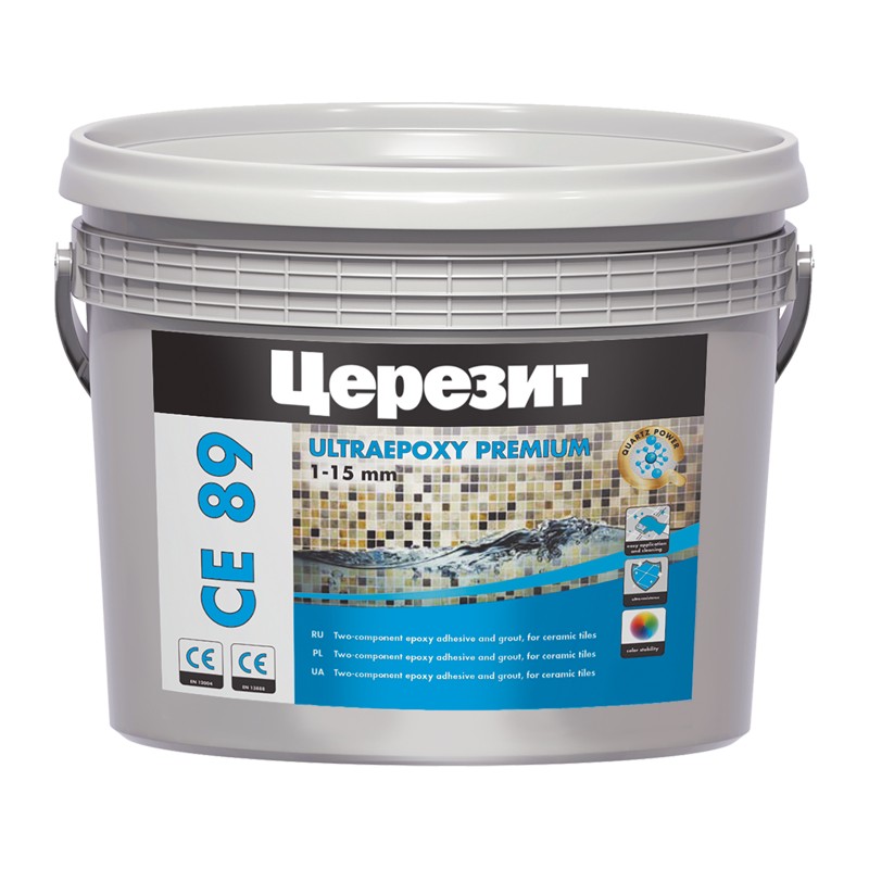 Эпоксидный состав CE 89 предназначен для крепления плиток и заполнения межплиточных швов при устройстве кислотостойких облицовок из керамической плитки и стеклянной мозаики на полах и стенах внутри и снаружи зданий с шириной швов от 1 до 15 мм. Состав: компонент А — смесь эпоксидных смол и инертных минеральных наполнителей; компонент Б — смесь органических отвердителей с минимальными рисками воздействия для пользователей.