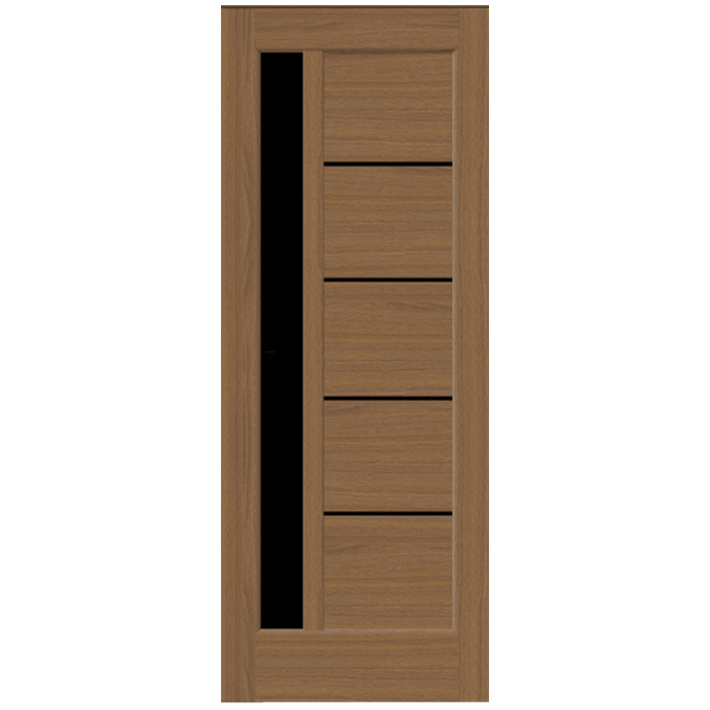 Межкомнатное царговое полотно, остекленное. Универсальное. Покрытие Softwood (ПВХ), гладкое, матовое. Обвязка полотна из царговых элементов. Внутренняя наборка - филенка, стекло черное лакобель. Полотно поставляется без фурнитуры и врезки под нее. Используется бескромочная технология.