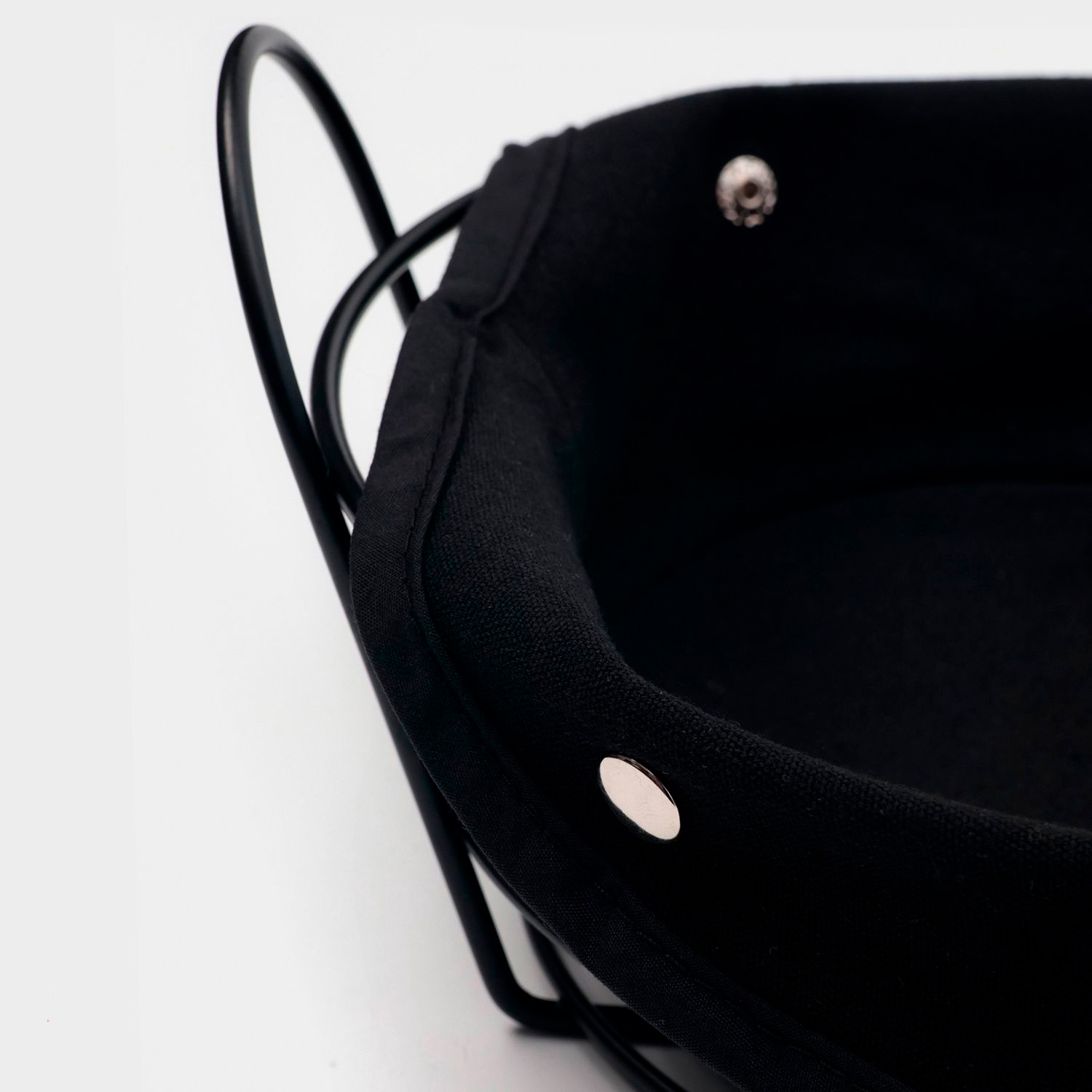 Корзина для хлеба выполнена из сочетания металла и текстиля, объединяя красоту дизайна и функциональные преимущества. Металлическая основа придаёт корзине необходимую прочность и устойчивость, а текстильная вставка сохраняет свежесть и аромат свежего хлеба. Такое сочетание материалов позволяет использовать корзину не только дома, но и на пикниках, вечеринках или приёмах гостей. Удобные ручки облегчает переноску корзины, позволяя брать её с собой куда угодно.