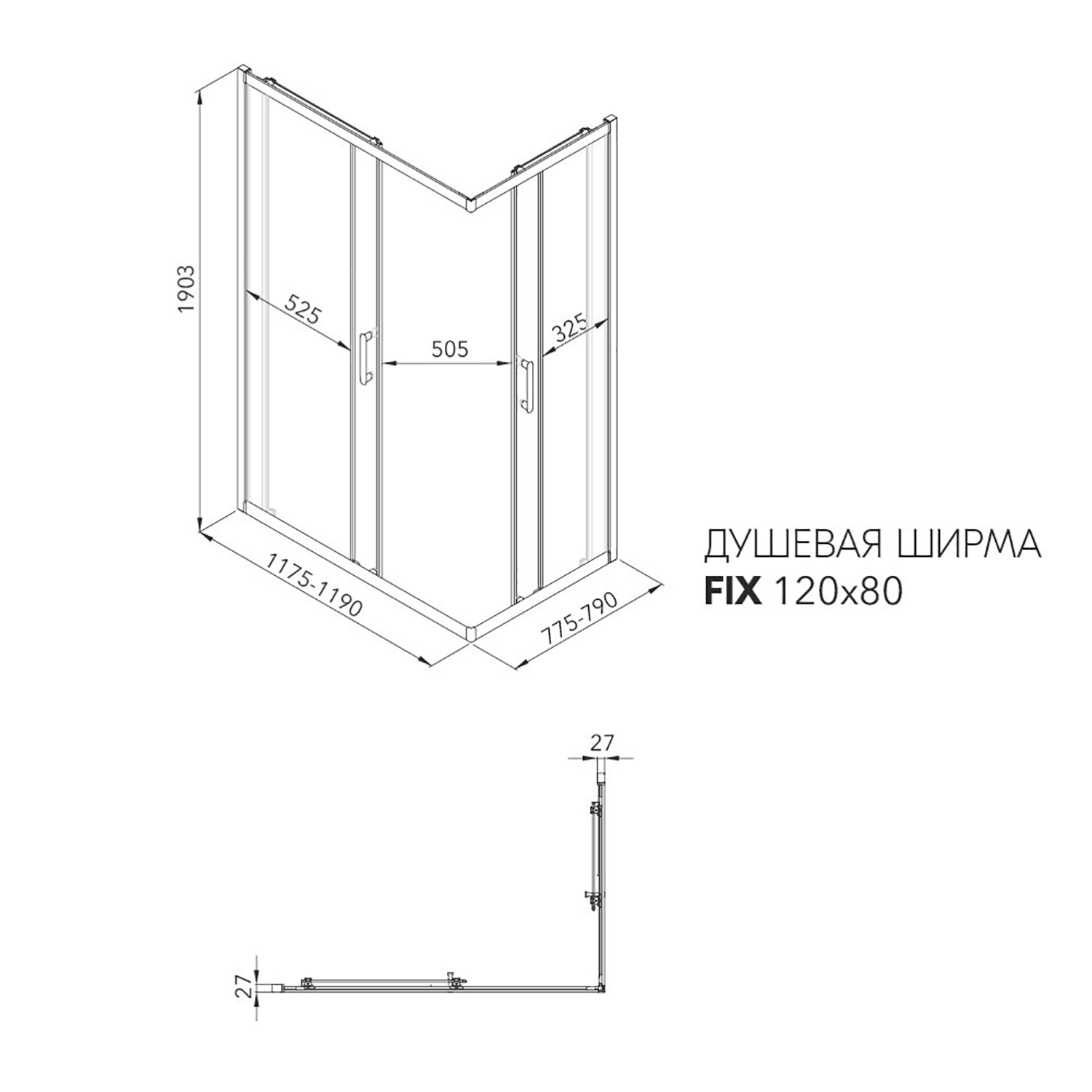 Душевая ширма TRITON Фикс-Хром 120х80