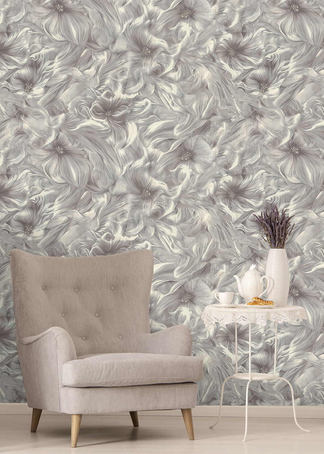 Коллекция обоев «Mia» основана на нежном и изысканном цветочном дизайне. Главный мотив этой коллекции — цветы с развевающимися лепестками, созданными с вниманием к деталям, словно их лепестки сотканы из самого лучшего шелка. Их движение напоминает легкое парение ткани под водой, что придаёт рисунку ощущение легкости и воздушности. Сердцевины цветов оформлены глиттером, они сияют, словно россыпь драгоценностей, привлекая своим блеском.