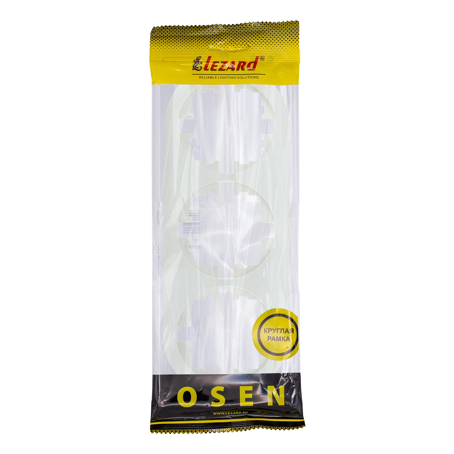 Рамка 3-местная OSEN горизонтальная круглая белая LEZARD 744-0200-148 - стильное сочетание современного дизайна и функциональности. Особенность серии — возможность выбора формы рамки: классическая квадратная или эстетичная круглая, что позволяет гармонично вписать изделие в любой интерьер. Огнеупорный пластик (устойчив к температуре 850 °C). Защита пальцев (во время монтажа нет возможности касания к каким-либо токопроводникам).
