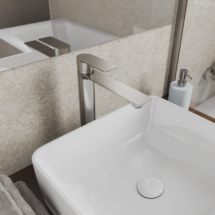 Смеситель для умывальника Maze – отличный способ вписать в интерьер ванной сдержанные геометрические формы. Четкие линии излива гармонично сочетаются с мебелью разных стилей и умывальниками популярных форм: с плавными или угловатыми линиями. Установка смесителя в высоком корпусе возможна как на умывальник, так и на мебельную тумбу или столешницу с настольным умывальником-чашей. Благодаря увеличенному выносу излива вода поступает в наиболее удобную для мытья рук точку раковины. Элегантный цвет смесителя достигается за счет брашировки поверхности. Полученный таким способом цвет обладает рядом преимуществ: неприхотливостью в уходе, повышенной устойчивостью к коррозии и образованию следов загрязнения (отпечатки пальцев, пятна, разводы).