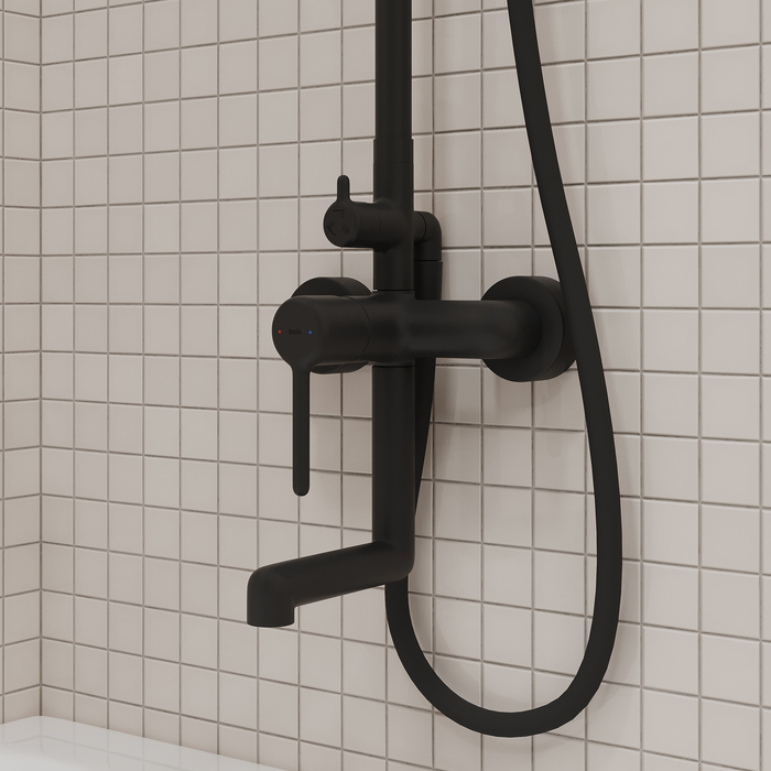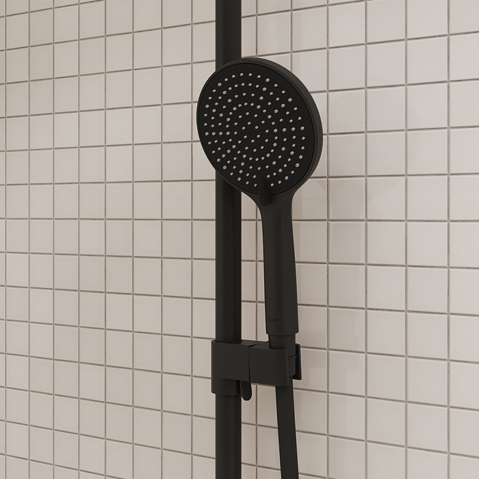 Стильная функциональная душевая система Aiger, где удачно сочетается актуальный современный дизайн и востребованный черный матовый цвет. Тонкая удлиненная ручка добавляет смесителю изящества и комфорт в управлении.