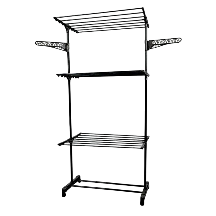 JOY HOME Tower - удобная и практичная напольная трехъярусная сушилка для белья и одежды черного цвета на колесиках. Данная модель станет идеальным решением для тех, кому важно удобство и функциональность.