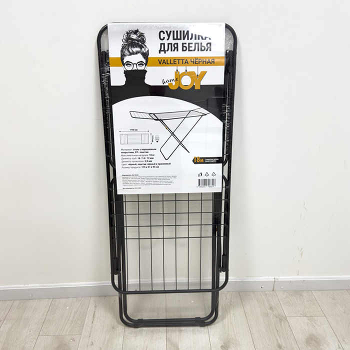 Напольная раскладная сушилка для белья — это удобное и практичное решение для сушки вещей в домашних условиях. Она изготовлена из стали с порошковым покрытием и PP-пластика. Сушилка представлена в стильном чёрном цвете, а пластиковые элементы — в чёрном и оранжевом цветах. Диаметр труб составляет 16 мм, 14 мм и 12 мм, проволока имеет диаметр 2,8 мм. Суммарная длина линий подвеса 18 метров, что позволяет разместить большое количество белья. В разобранном виде сушилка имеет размеры 175 х 51 х 95 см. Максимальная нагрузка составляет 18 кг.