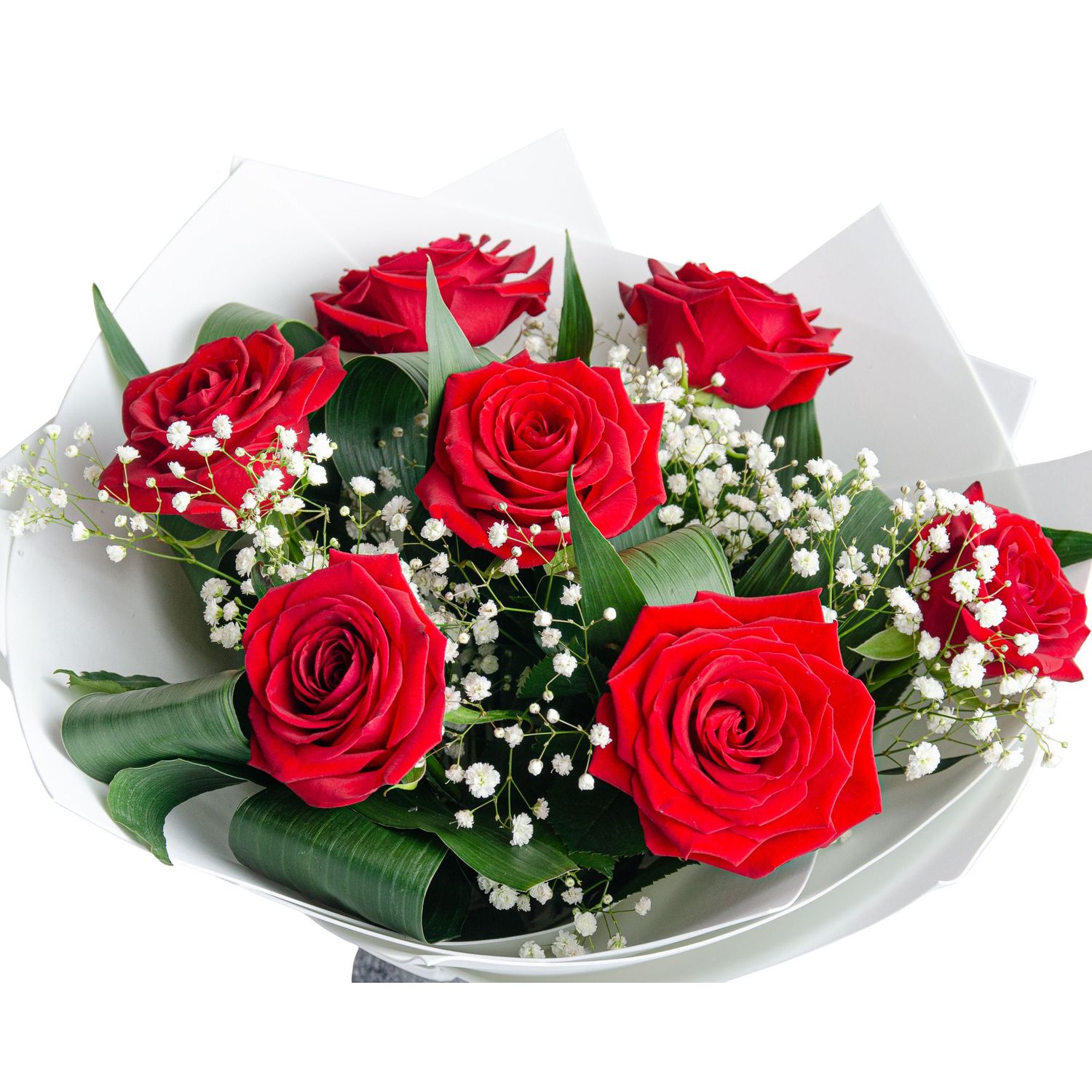 Букет из 7 алых роз — классическое воплощение страсти и любви. Каждая роза, словно пламя, пылает глубоким красным оттенком, символизируя искренние чувства и преданность. Пышные бутоны с бархатистыми лепестками раскрываются, наполняя воздух тонким, благородным ароматом.