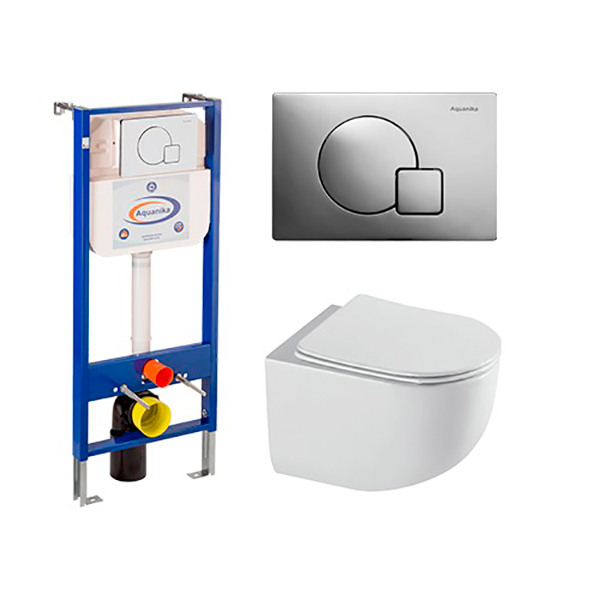 Инсталляция для унитаза + Унитаз подвесной KOLLER POOL Aqua 10.702.450.02.10+AQ-0495-RQ3