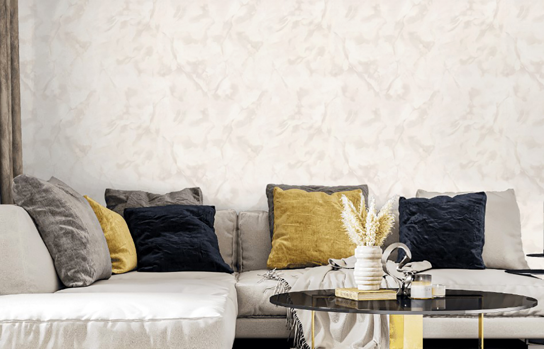Эта техника позволяет добиться удивительной глубины текстуры, а плотная фактура скрывает неровности стены. Универсальные цветовые решения создают настроение на любой вкус. Льняной, платиновый, голубовато-серый и цвет слоновой кости добавят уюта и увеличат пространство, а насыщенные оттенки морской волны, маренго и голубиного крыла станут яркими художественными акцентами в интерьере.