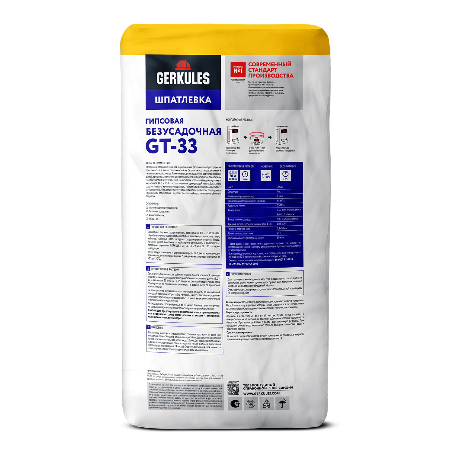 Шпатлевка гипсовая GERKULES GT-33 безусадочная 20кг