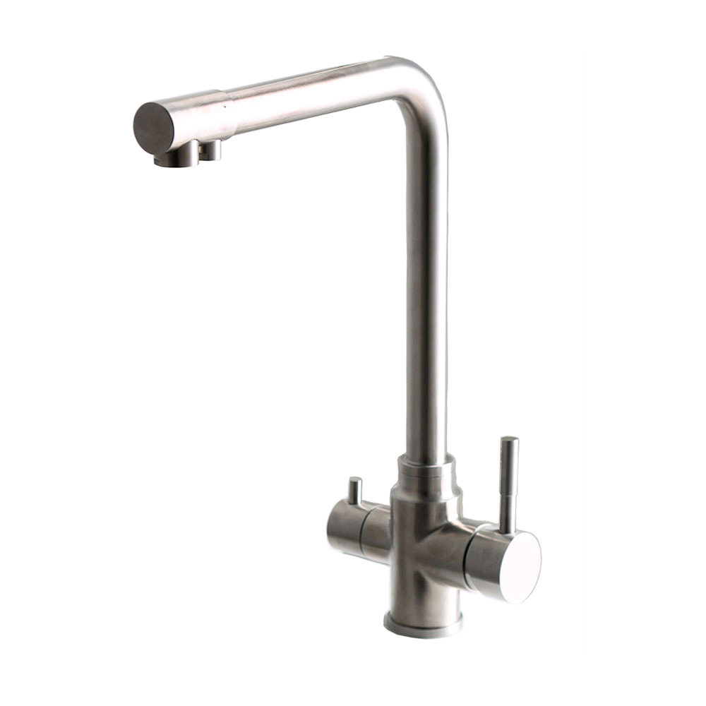 Смеситель для кухни A54309/L для использования с фильтром питьевой воды. Сталь — SUS304. Излив с 2 аэраторами. В комплекте переходник для соединения с фильтром. Смесители торговой марки LEAQUA соответствует общеевропейским стандартам (CE), американским стандартам (UL), международным стандартам качества (ISO). Продукция реализуется по всей России, имеет хорошие отзывы потребителей разных стран мира, в том числе и в России.