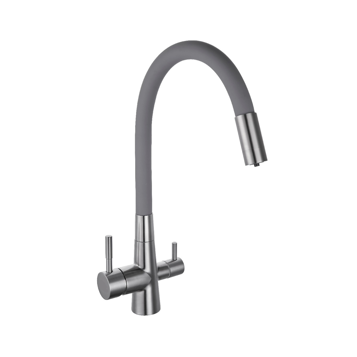 Смеситель для кухни A54029-12/L для использования с фильтром питьевой воды. Излив гибкий силиконовый с аэратором. В комплекте переходник для соединения с фильтром. Сталь — SUS304. Смесители торговой марки LEAQUA соответствует общеевропейским стандартам (CE), американским стандартам (UL), международным стандартам качества (ISO). Продукция реализуется по всей России, имеет хорошие отзывы потребителей разных стран мира, в том числе и в России.