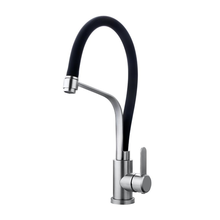 Смеситель для кухни A54012-7/L. Излив гибкий силиконовый. Сталь — SUS304. Смесители торговой марки LEAQUA соответствует общеевропейским стандартам (CE), американским стандартам (UL), международным стандартам качества (ISO). Продукция реализуется по всей России, имеет хорошие отзывы потребителей разных стран мира, в том числе и в России.