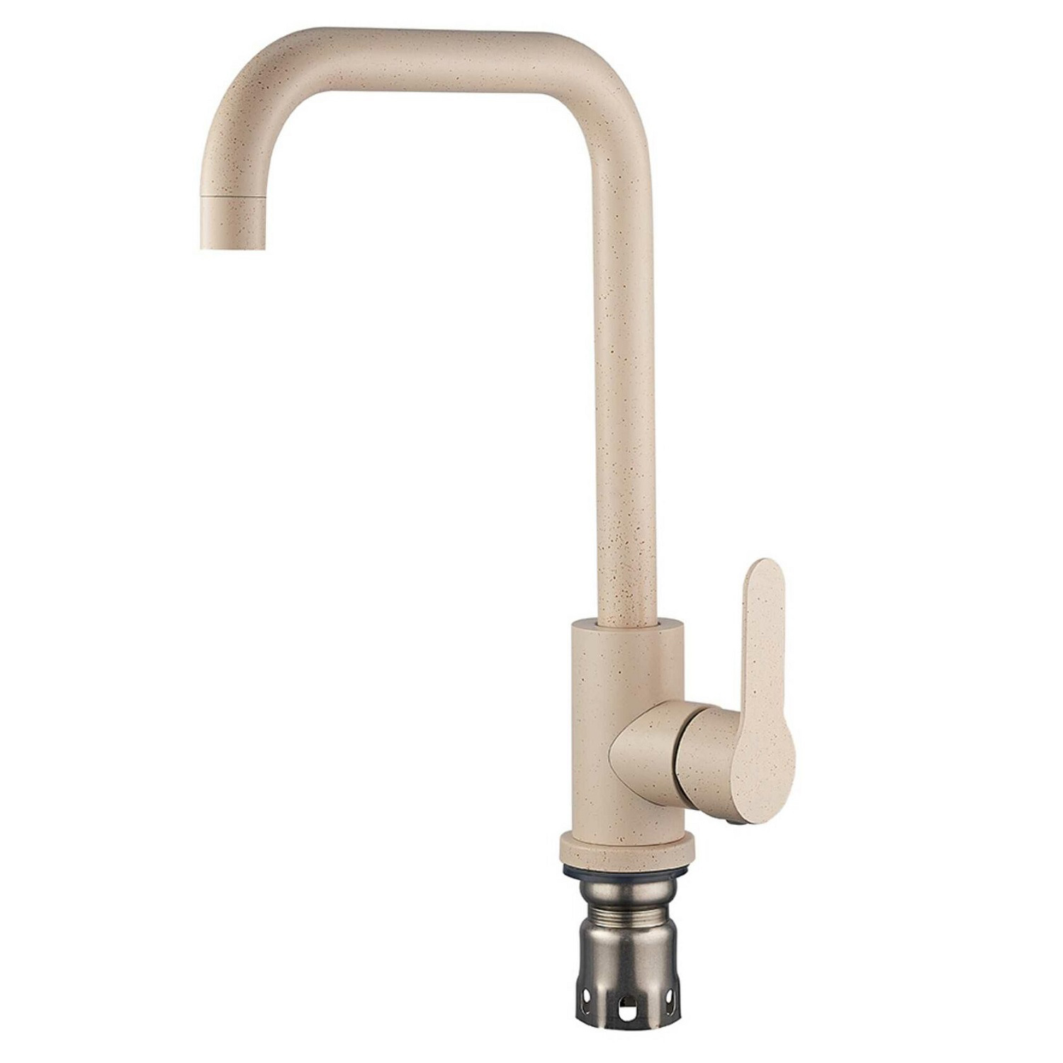 Смеситель LEAQUA выполнен в бежевом цвете. Отличается простой и точной настройкой необходимой температуры и мощности напора. Смеситель изготовлен из высококачественной нержавеющей стали марки 304, цвет покрытия — бежевый. Отличный вариант цветного решения не только для вашей кухни, но и для в цвет вашей каменной мойки. Встроенный аэратор делает струю более равномерной, что снижает расход воды.