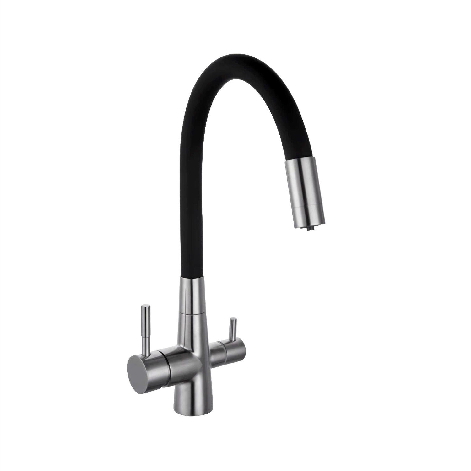Смеситель для кухни A54029-7/L для использования с фильтром питьевой воды. Излив гибкий силиконовый с аэратором. В комплекте переходник для соединения с фильтром. Сталь — SUS304. Смесители торговой марки LEAQUA соответствует общеевропейским стандартам (CE), американским стандартам (UL), международным стандартам качества (ISO). Продукция реализуется по всей России, имеет хорошие отзывы потребителей разных стран мира, в том числе и в России.