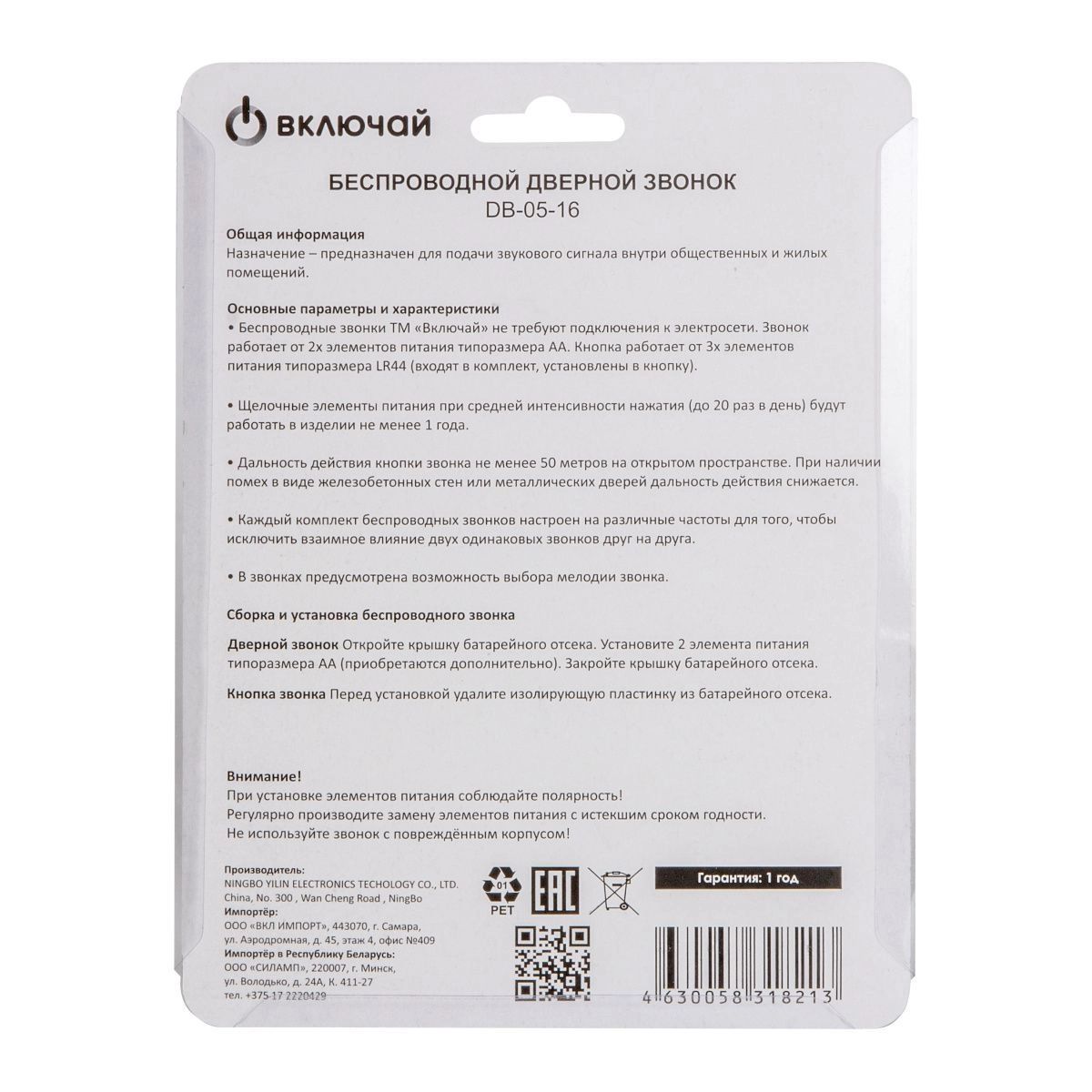 Звонок ВКЛЮЧАЙ DB-05-16