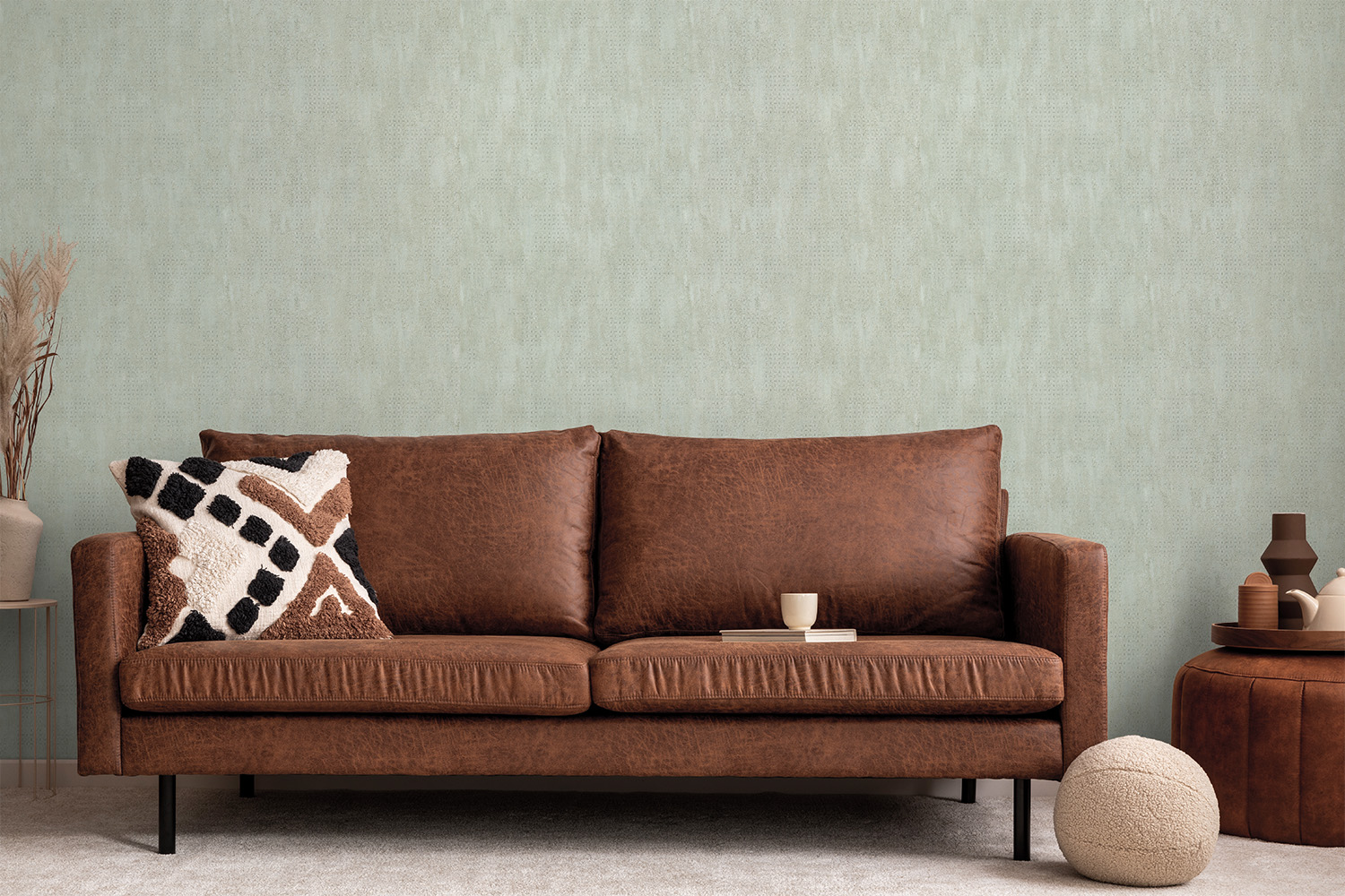Лейтмотив новой коллекции – кожа рептилии, превращённая в утончённую архитектурную графику. Поверхность полотен вибрирует в лучах света благодаря перламутровому напылению, а металлические пигменты делают рисунок почти живым и подвижным. Покрытия работают как единый фон, не разрывая пространство и не отвлекая на лишние детали.