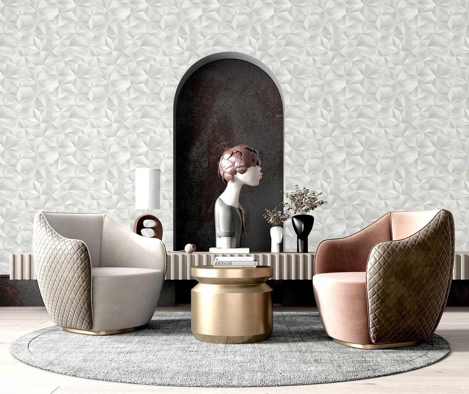 Обои выполнены из высококачественных материалов, обеспечивающих долговечность и простоту в уходе. Они отлично подходят для гостиных, спален и кабинетов, добавляя пространству утонченность и благородство.