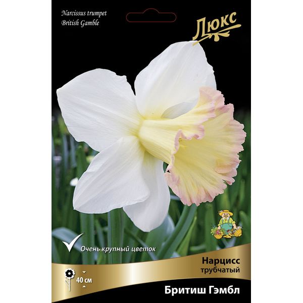 Бритиш Гэмбл - высота растения 40 см, белый, с нежной сливочно-лососевой коронкой