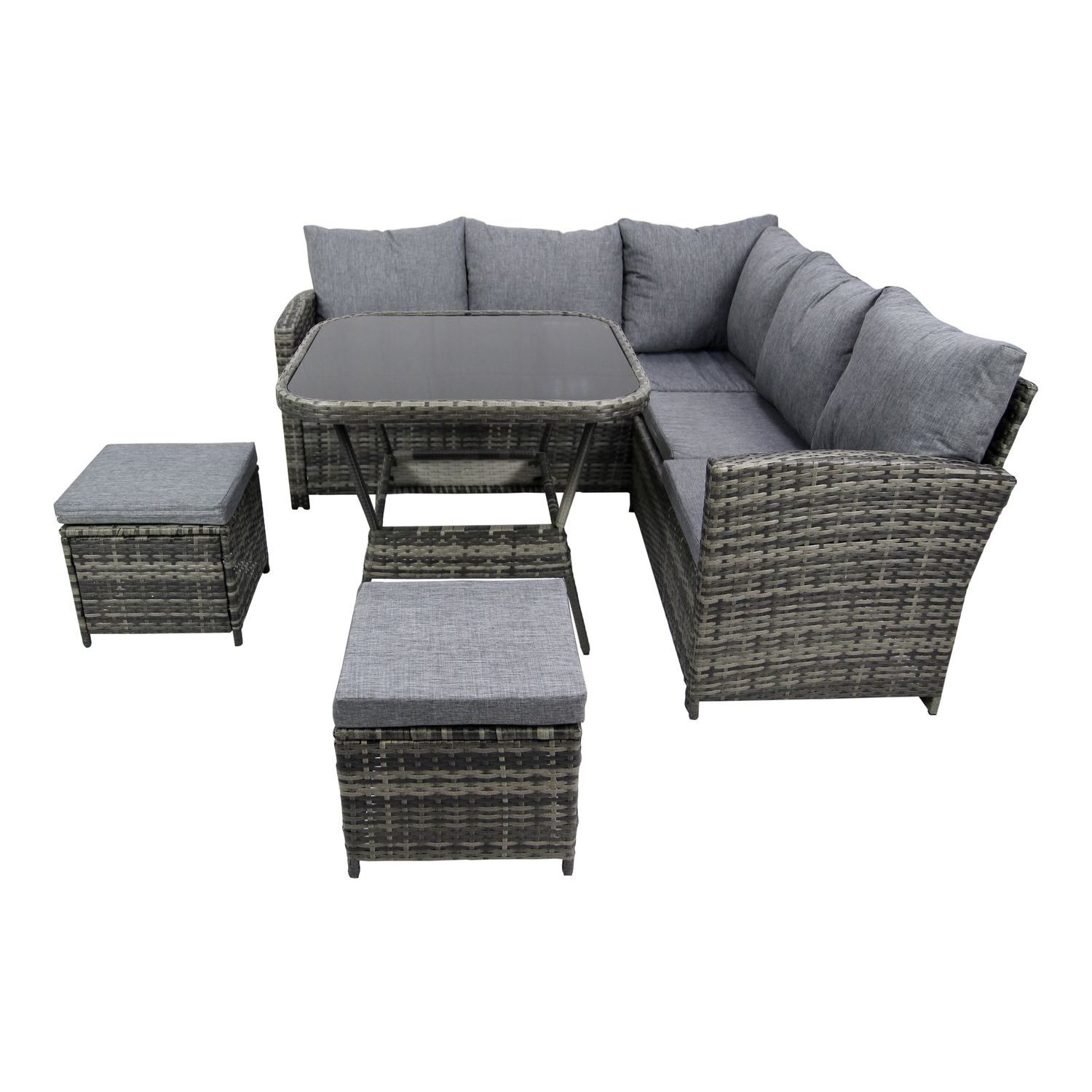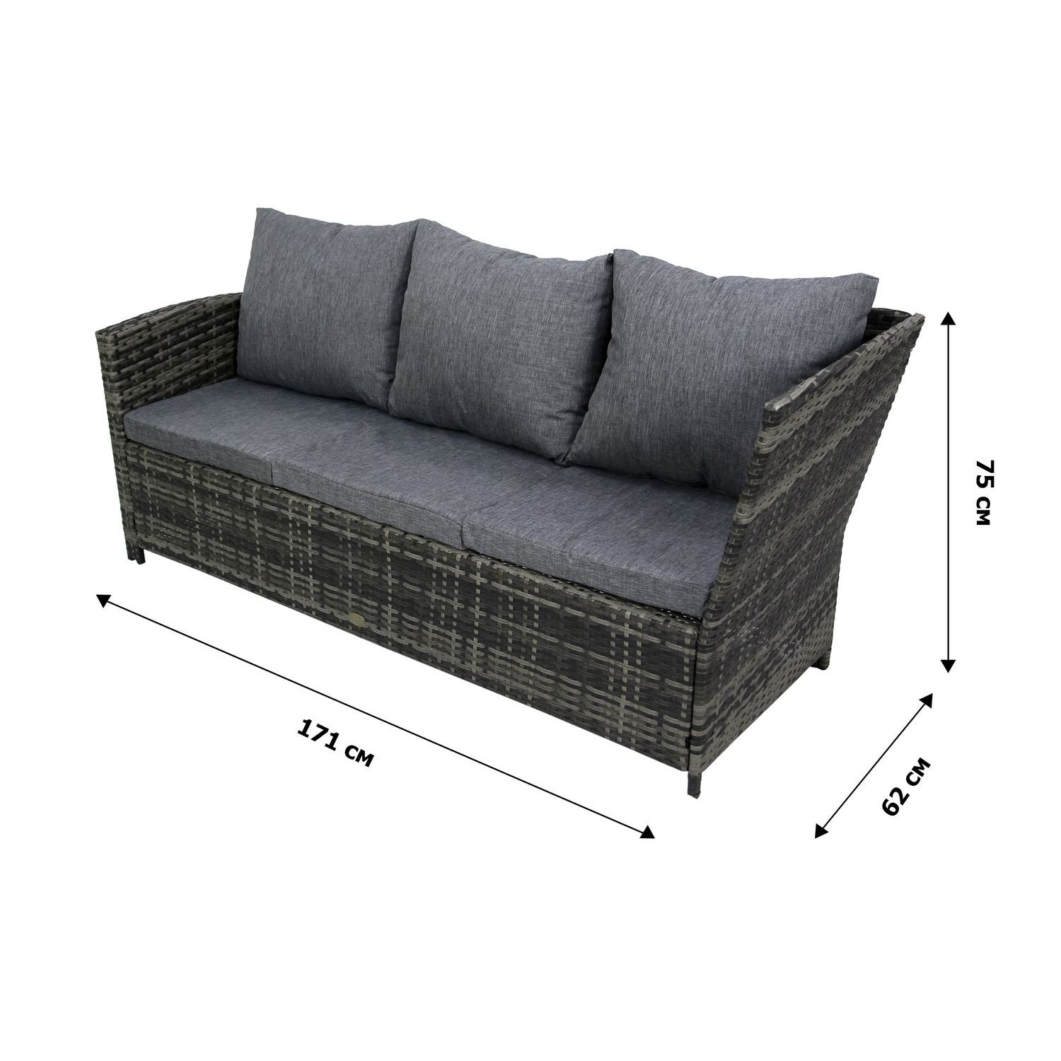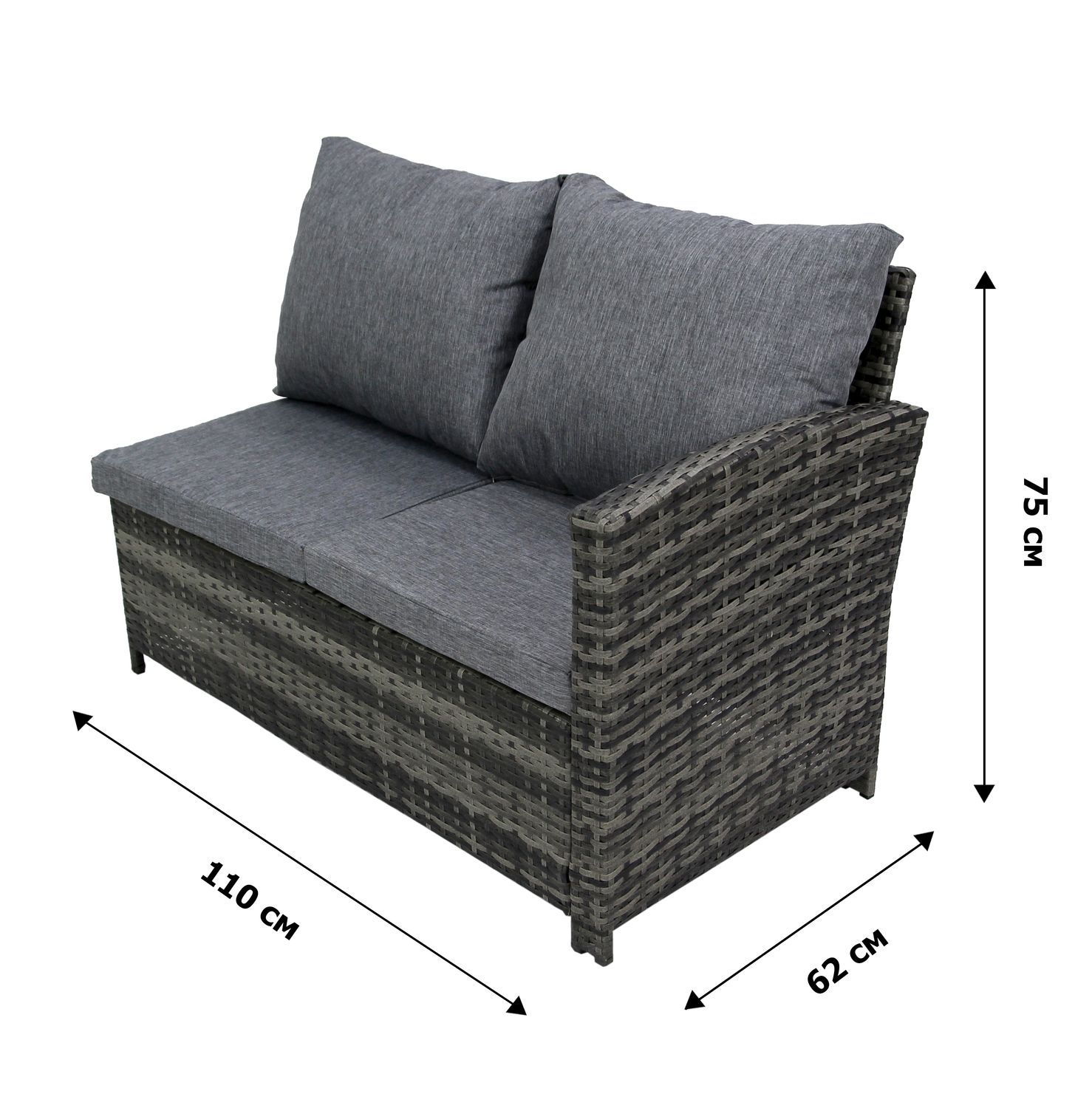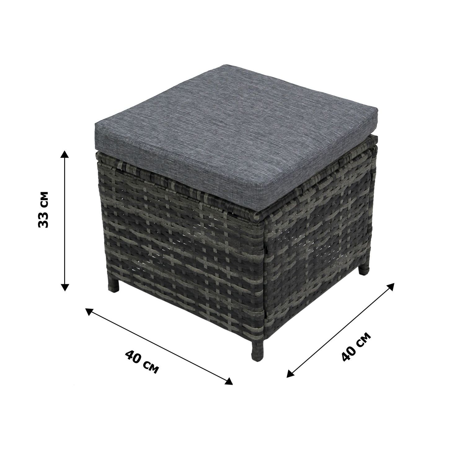 Модульный набор мебели представлен оригинальной комбинацией предметов для комфортного отдыха на открытом пространстве. Набор состоит из стильного стола размером 80×80×69 см, удобных пуфов квадратной формы 40×40×33 см каждый, вместительного трехместного дивана 62×171×75 см и просторного двухместного дивана 62×110×75 см.