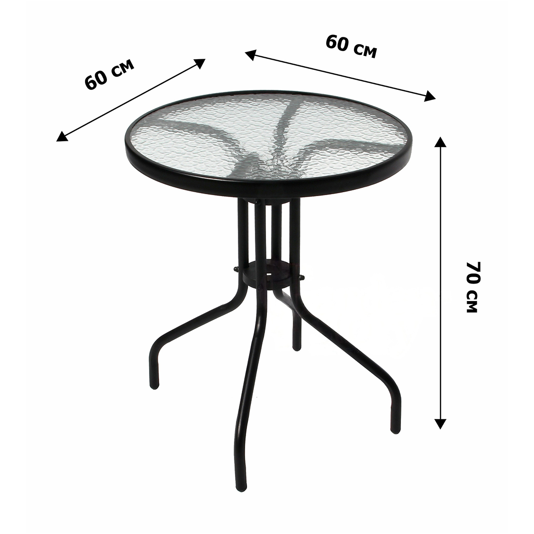 Набор мебели Сан-Ремо мини включает в себя компактный круглый стол размером 60×60 см высотой 70 см и два удобных разборных кресла размерами 55×65×90 см каждое. Стальной чёрный каркас обеспечивает изделию прочность и долговечность, идеально подходит для размещения на улице.