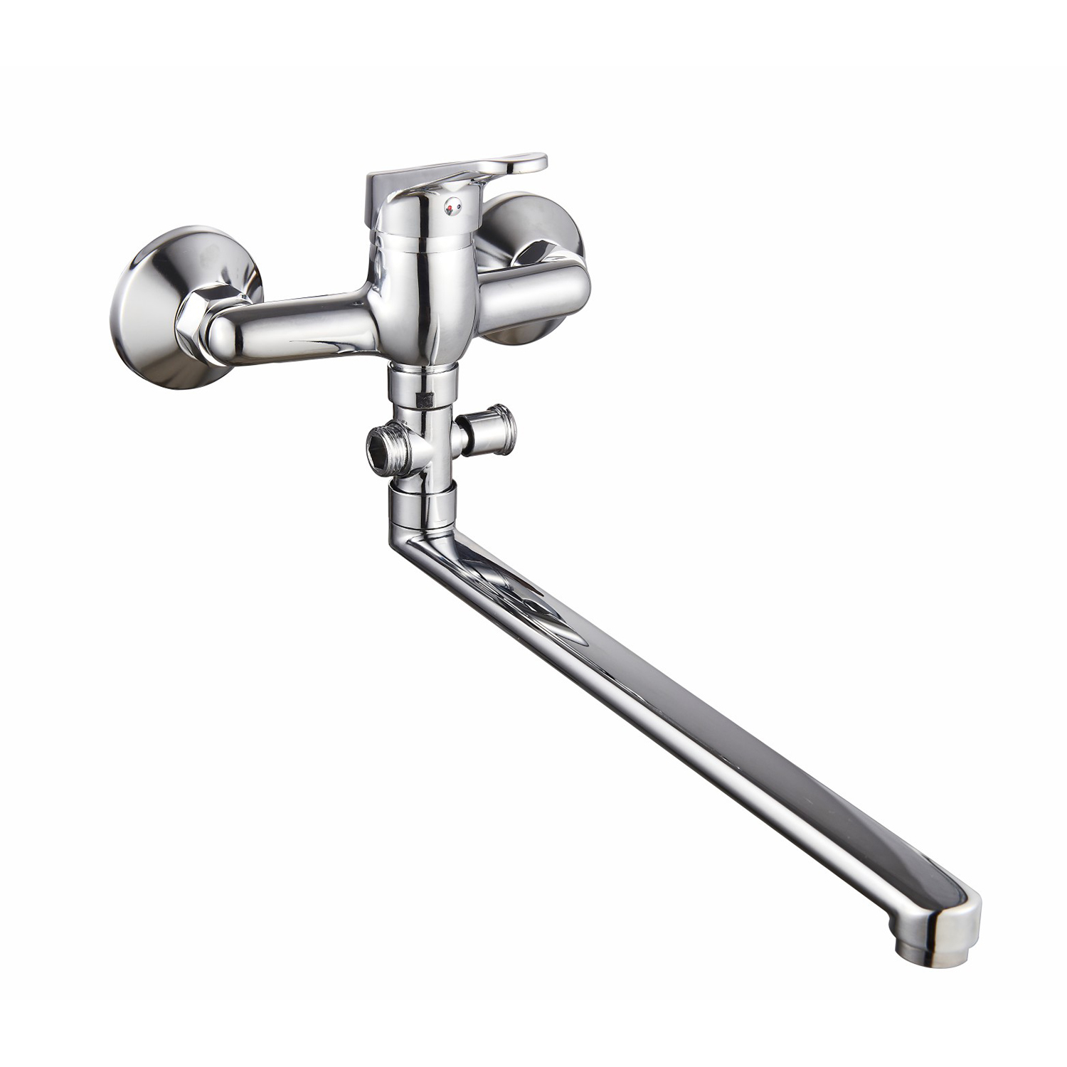 Хромированный однорычажный смеситель для ванны ECO с длинным поворотным изливом и возможностью бокового подключения душевого шланга. Изготовлен из латуни, устойчив к коррозии и безопасен для здоровья. Пластиковый аэратор насыщает поток воды кислородом, что сокращает расход потребления воды. Запорный механизм картридж керамика d35. Длина излива- 325 мм. Девертер штоковый (ручной). В комплекте крепеж: эксцентрик + прокладка.