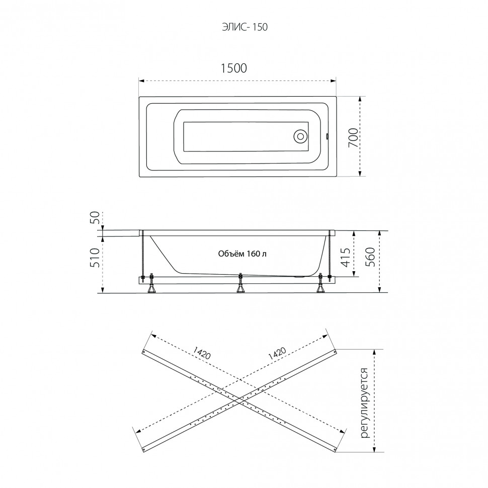 Стандартный размер ванны позволяет разместить ее даже в обычном санузле. Ударопрочная ванна выполнена из гипоаллергенного материала. Поверхность ванны идеально белого цвета, без посторонних вкраплений. Вода в такую ванну набирается практически бесшумно и долго не остывает.