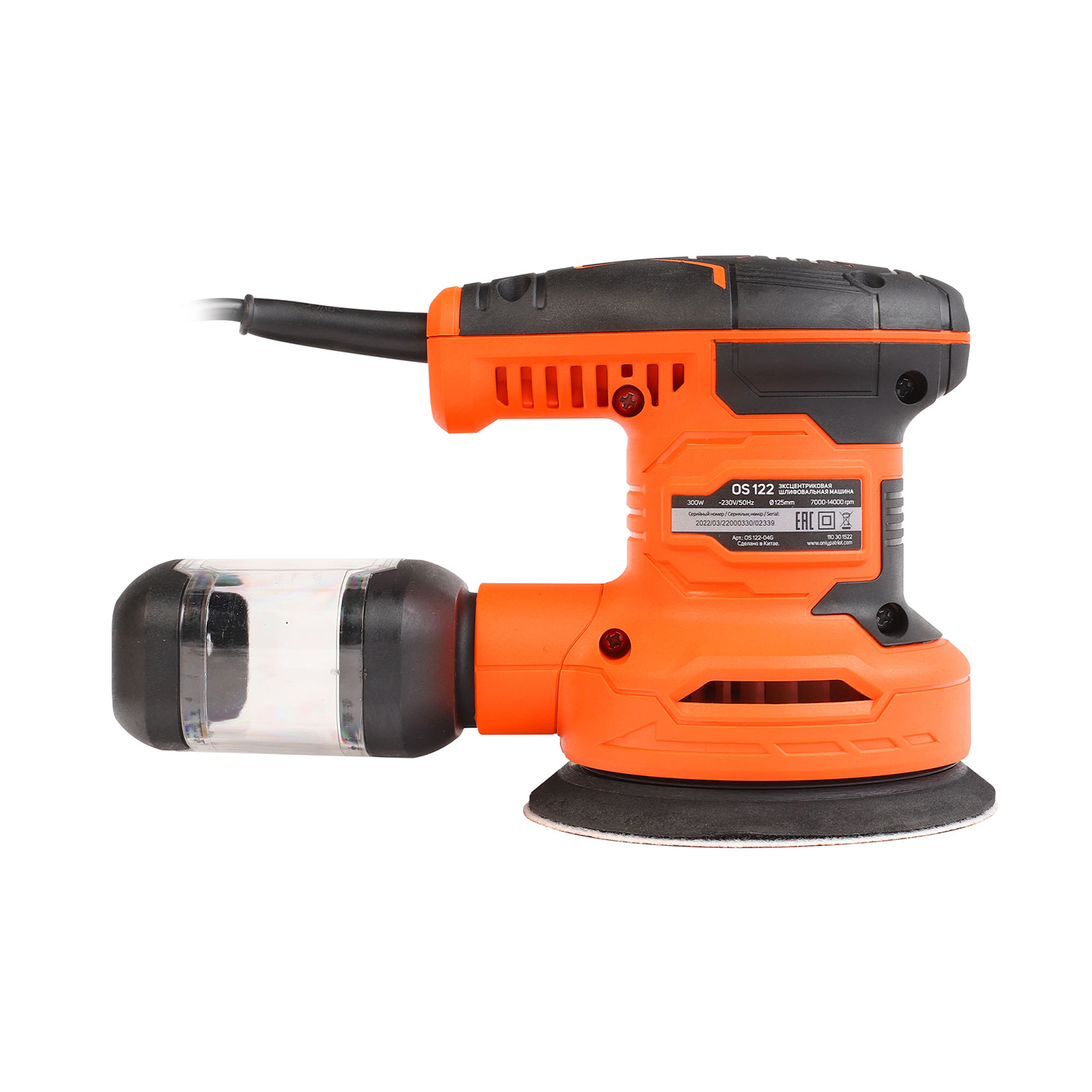 Эксцентриковая шлифовальная машина OS 122 оснащена мощным двигателем на 300Вт с функцией регулировки скорости в диапазоне от 7000 до 14 000 об/мин, что позволяет выполнять различные отделочные работы, от грубого шлифования материала до высокопроизводительных отделочных работ. OS 122 комплектуется пластиковым коробом для сбора пыли, а так же имеет пылезащищённую кнопку включения, что увеличивает срок службы инструмента.