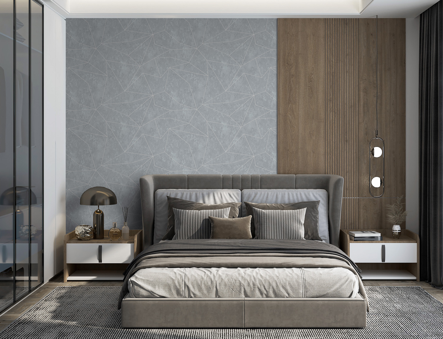 Фактурные полотна украшены множеством фигур, созданных тонкими серебристыми и золотистыми линиями. Каждый элемент уникален в своей форме и размере, но все вместе они дополняют друг друга, создавая безупречный «мозаичный» рисунок.