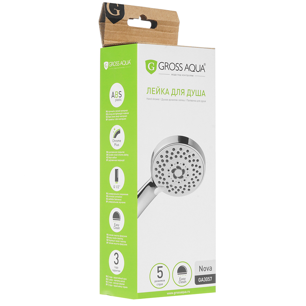 Сделайте из ванной комнаты место для SPA процедур вместе с лейкой для душа Nova GA3057. 5 режимов струи позволят насладится водными процедурами в полном объеме! 5 режимов: дождевая струя, массажная струя, мягкая струя, дождевая струя + массажная струя, дождевая струя + мягкая струя. Easy Clean - легкая очистка форсунок из мягкого силикона. Универсальное соединение G 1/2''.