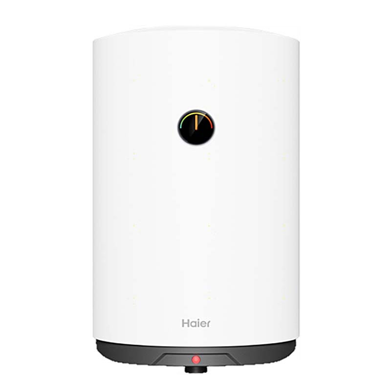 Внутренний бак из стали с эмалевым покрытием. Корпус металлический. Цвет белый. Термометр на лицевой стороне. Механический регулятор температуры на нижней крышке. Патрубки холодной и горячей воды расположены снизу. Расстояние между патрубками 100 мм. Диаметр подключения 1/2" наружняя резьба. Фирменная технология Haier для защиты от поражения электрическим током - ShockProof - диэлектрические проставки на патрубках.