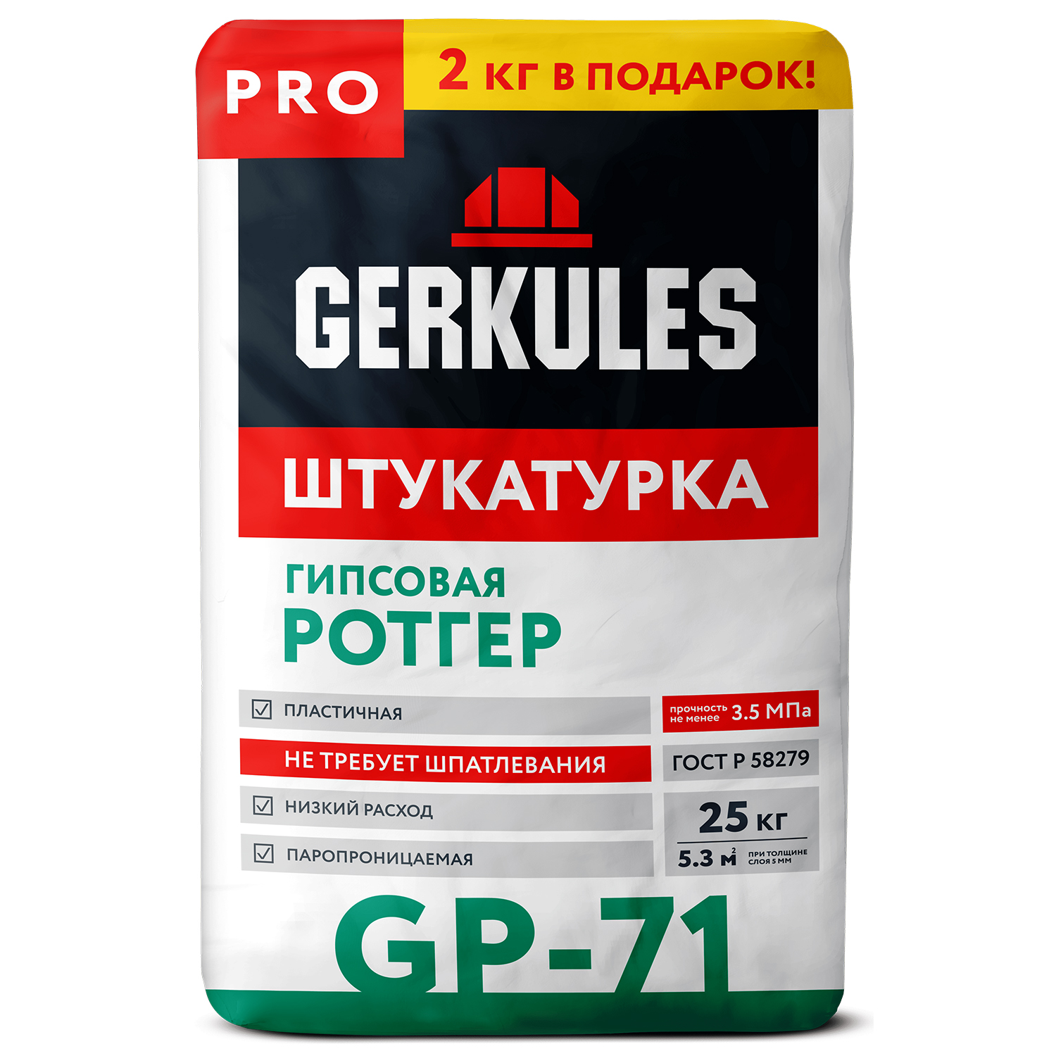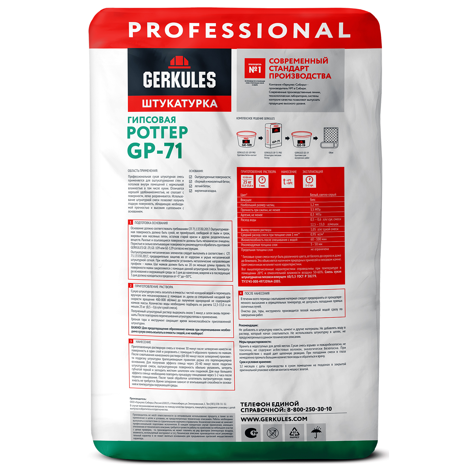 Штукатурка гипсовая GERKULES Ротгер Pro GP-71 25кг