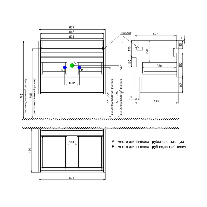 Тумба-умывальник IDDIS Zodiac X 70 + раковина