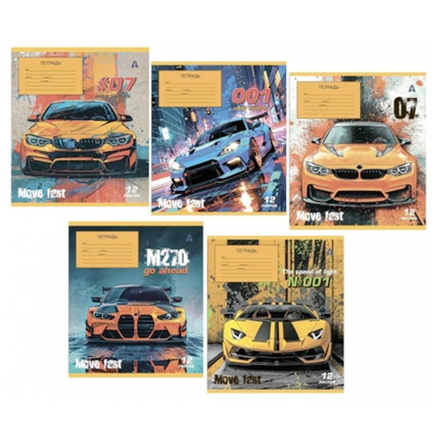 Тетрадь 12л., линейка, Alingar, скрепка, блок офсет, 100% белизна, мелованный картон (стандарт)
