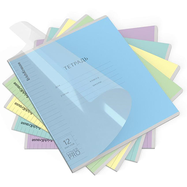 Тетрадь школьная ученическая формата А5+ (170х203 мм). Двойная обложка: внешняя выполнена из высококачественного износостойкого прозрачного пластика с фактурой «зеркало», внутренняя — из качественной мелованной бумаги.. В блоке 12 листов в линейку с полями. Бумага офсетная плотностью 60 г/м2. Цвет линовки - синий. Скругленные уголки обложки и блока. Тип скрепления - скоба. Тетради одного цвета упакованы в термоусадочную пленку по 10 штук. Товар поставляется в нескольких вариантах цвета без возможности выбора.